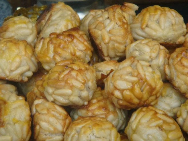 Panellets: originally from Cataluña, rounds treats are made of almonds, potato, sugar and pine nuts. It is suggested that these are enjoyed with a glass of sweet moscatel wine.